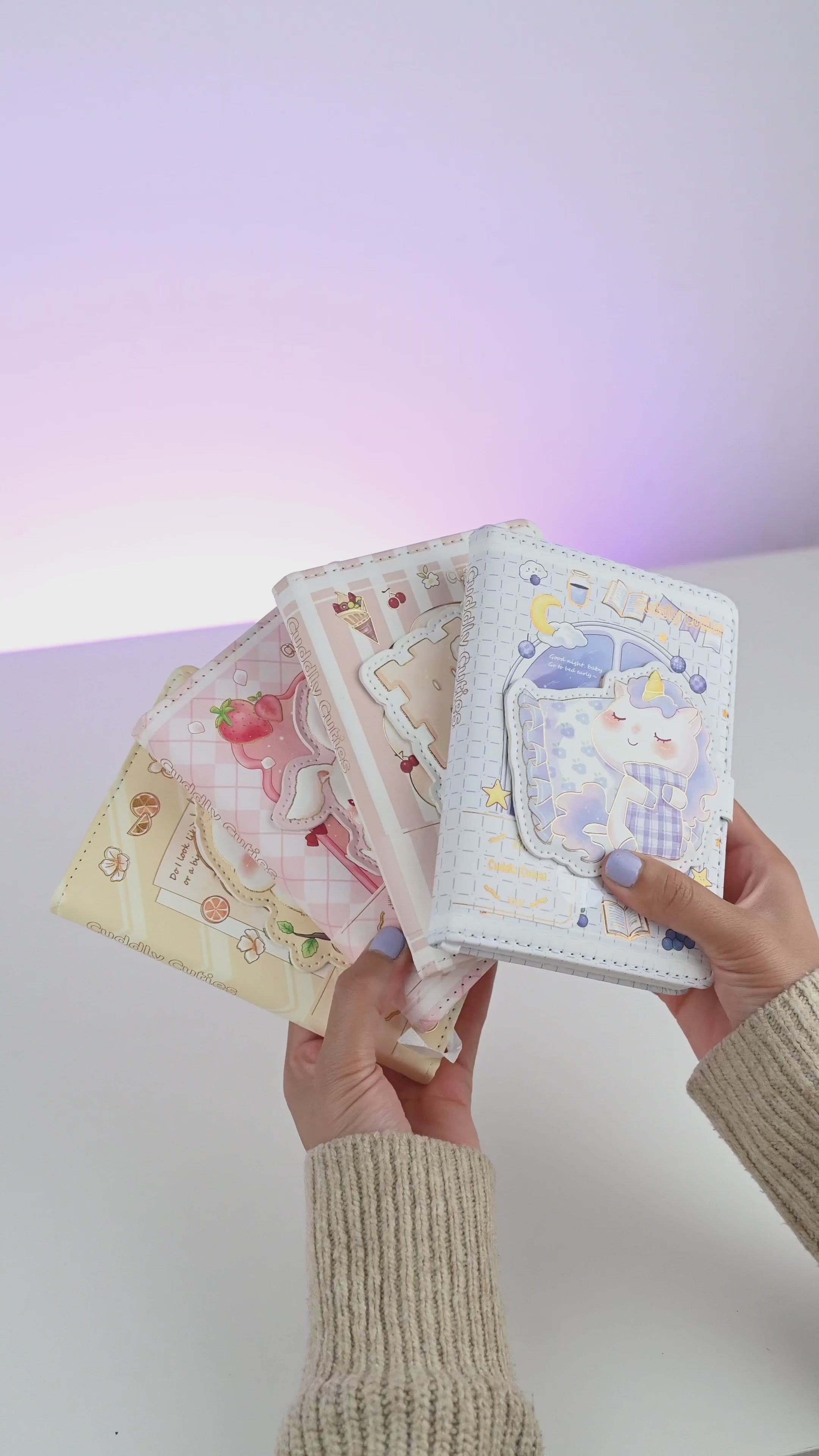 These cute and playful notebooks are designed to brighten up your everyday writing experience with cheerful cartoon illustrations and warm pastel tones. Each notebook features a soft PU leather cover with secure stitching, ensuring durability and a premium touch. The covers come with unique embossed 3D designs that bring the characters to life, making them both fun and functional. Inside, the notebooks are equipped with high-quality writing paper, wire-bound inserts that flatten at 180 degrees for ease of use, and practical details like a magnetic flap or strap closure to keep your notes safe. Perfect for journaling, school, work, or as a thoughtful gift, these notebooks combine functionality with charming aesthetics to add joy to every page you write.