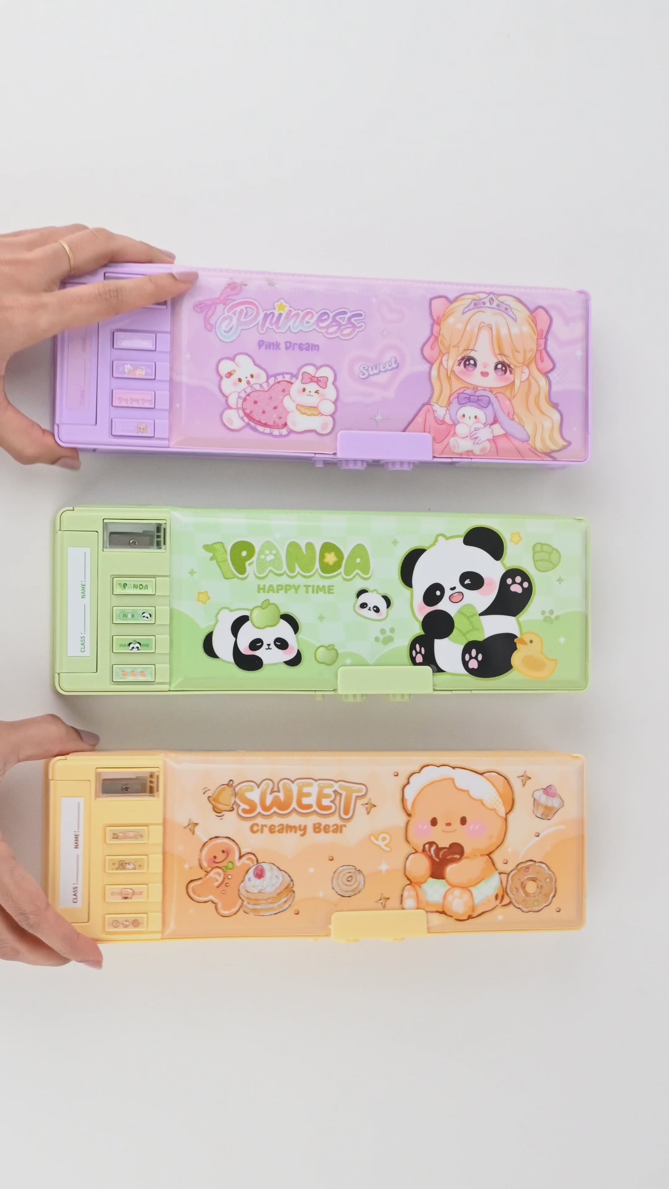 Make studying fun, secure, and organized with this feature-packed Magnetic Compass Box! Designed with cute themes like Sweet Creamy Bear, Pink Dream Princess, and Happy Time Panda, this multipurpose stationery case is perfect for kids who love both functionality and style. The Key Features involves a Dual Password and Lock Design, Strong Magnetic Closure, Spacious Multi-compartment layout, Built-in scale & calendar display and Rotating compartments. Additionally, erasable writing panel for drafting records.